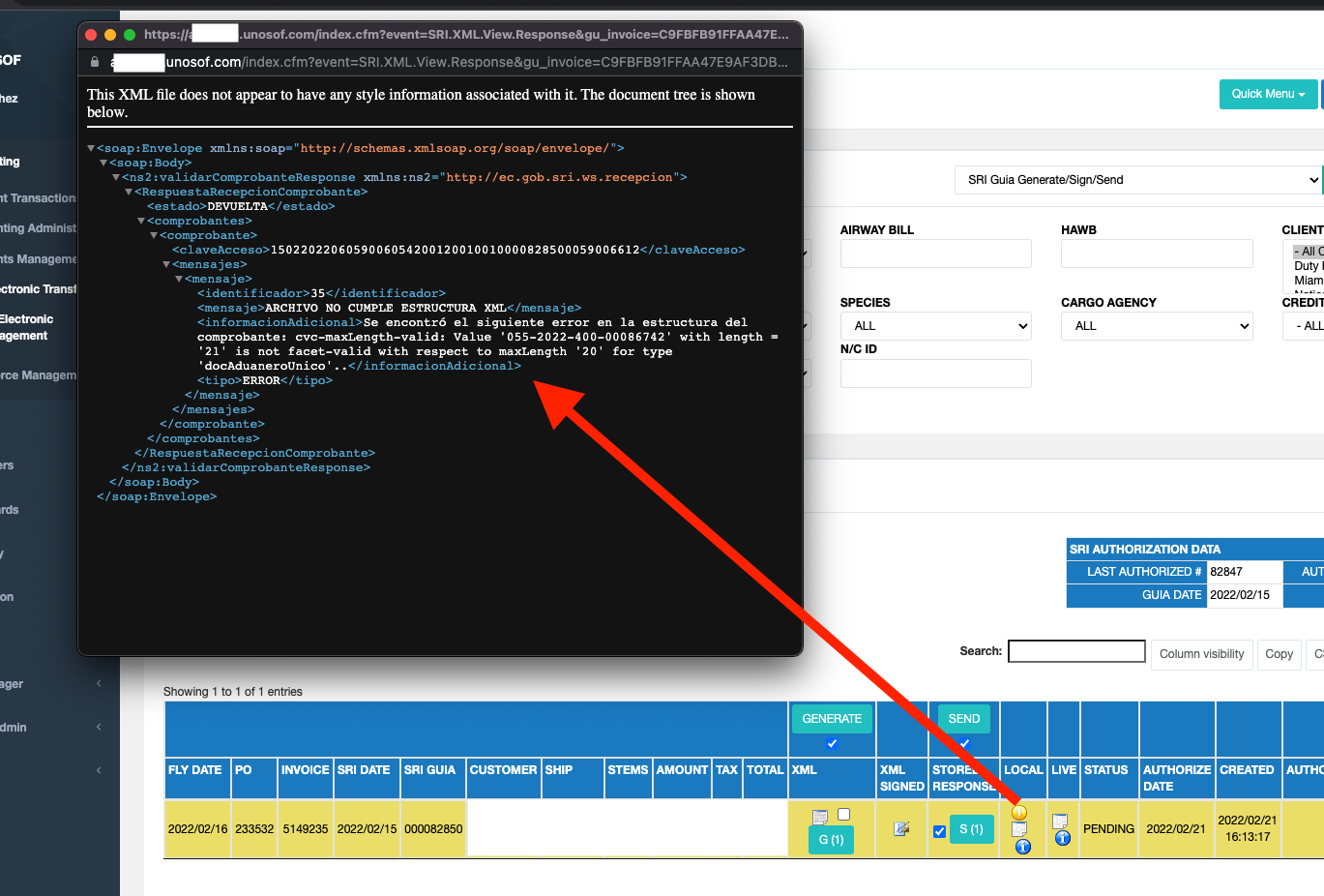 ### docCustomsUnique - is not facet-valid with respect to maxLength '20' for type 'docCustomsUnique' ​ ​&#x20;