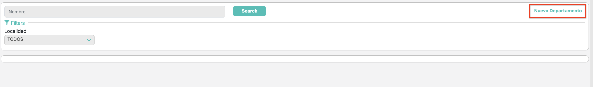 Dentro de la página de Departamentos, haga clic en la opción **Nuevo Departamento** ubicado en el lado superior derecho.