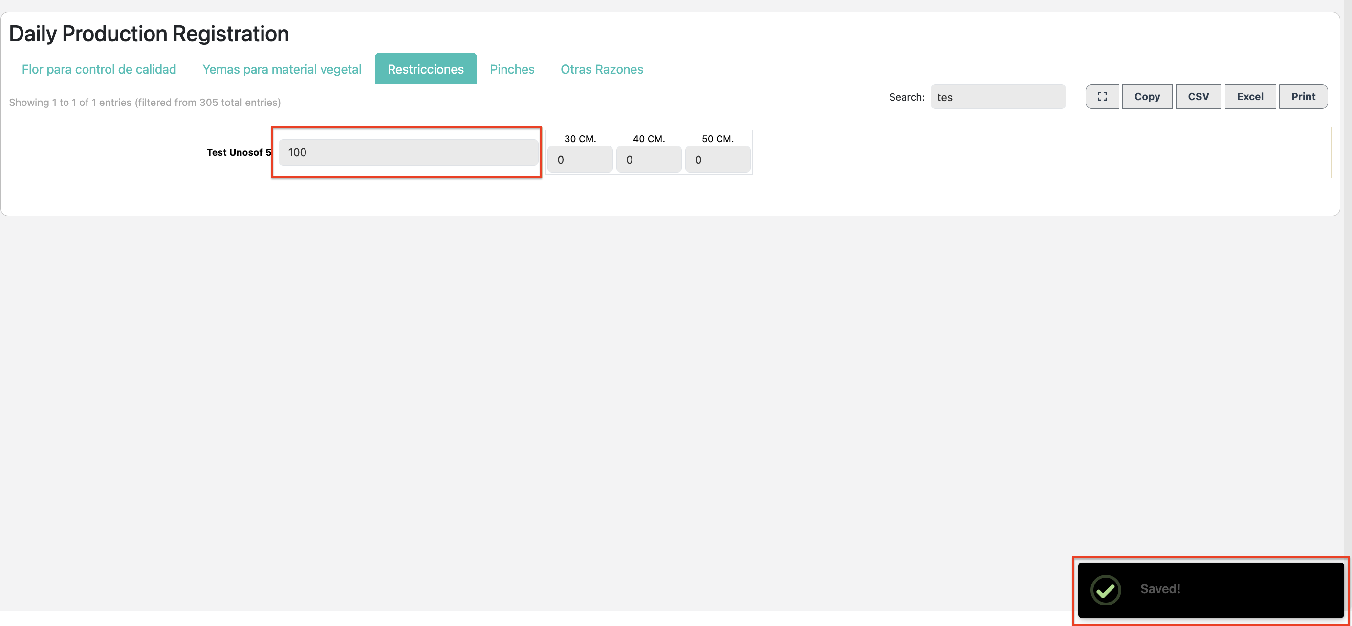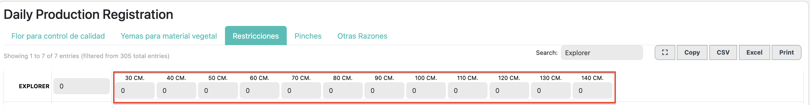 Las restricciones también se mostrarán en el reporte de producción en la opción "Bruto Production by Variety Total".