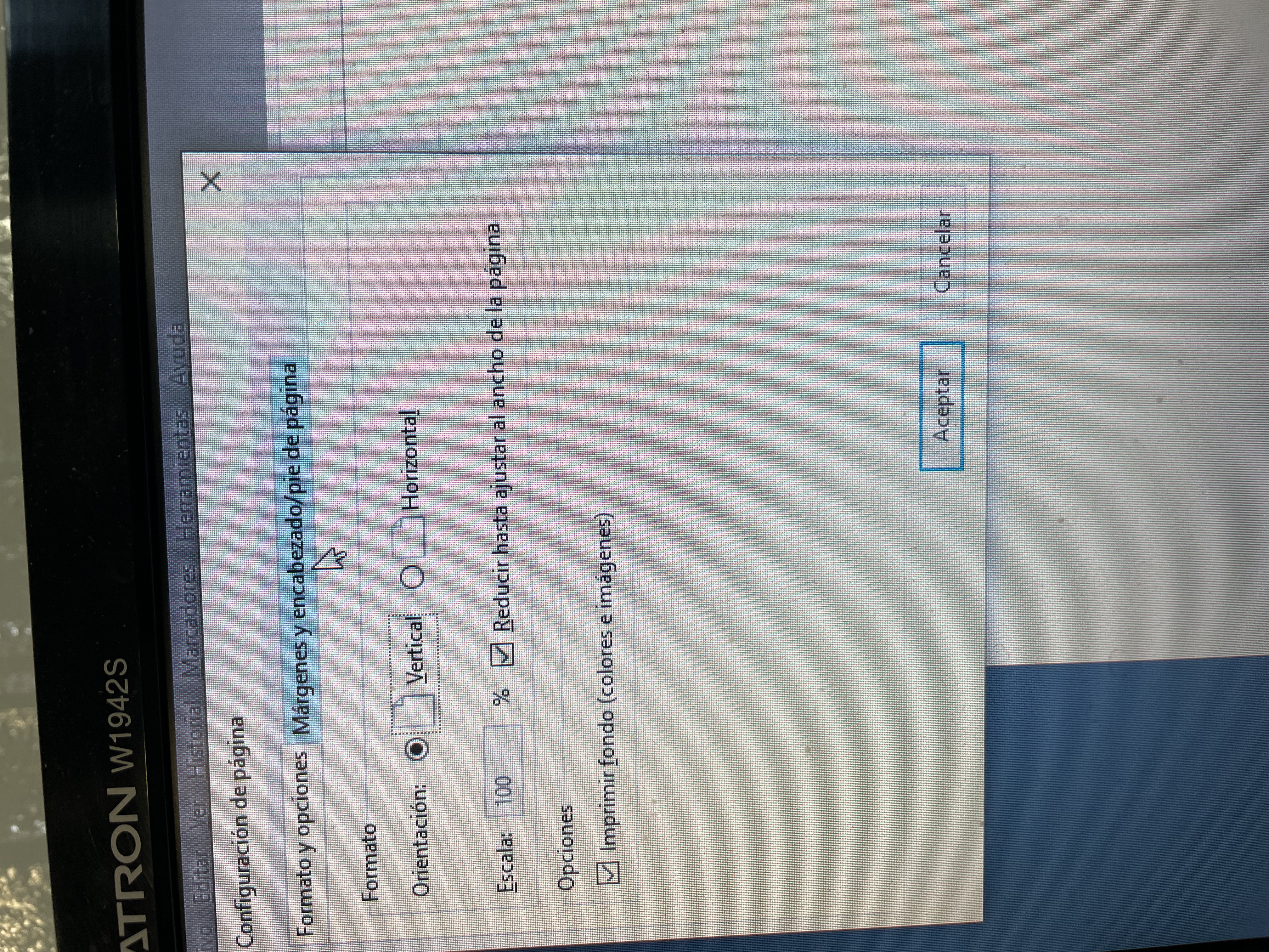 ### Guardar configuración, impresión, márgenes y encabezados Firefox: